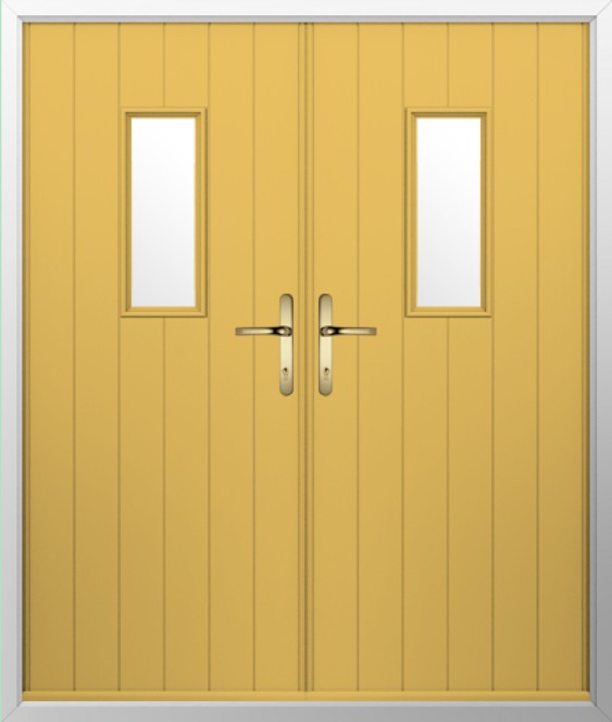 The Solidor Ancona French Timber Composite Door in Buttercup Yellow, with a huge range of designs and colours.