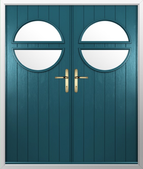 The Solidor Pisa French Timber Composite Door in Peacock Blue, with a huge range of designs and colours.