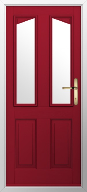 The Solidor Harlech 2 Traditional Timber Composite Door in Ruby Red, with a huge range of designs and colours.